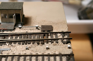 Contrairement au précédent modèle, les mats n'ont pas été limés. Je vais essayer de les peindre d'une couleur vive (bleu cobalt ou rouge brique), comme on peut en trouver sur les équipements réels dans les petites gares du réseau. Cette couleur contrastera avec les grands lampadaires doubles qui resteront probablement gris.